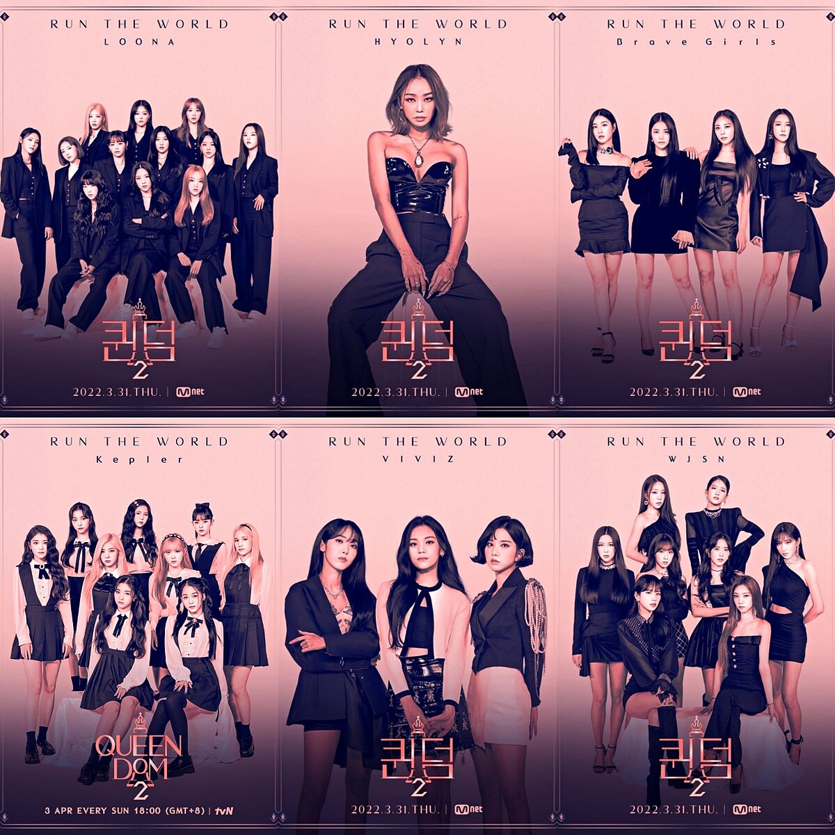 此外,本季參賽團體還有K-POP的孝琳、宇宙少女、Kep1er等共6組藝人。其中以清純甜美曲風和高顏值外型打響知名度的女團「宇宙少女」及擁有12名成員的多人女團「本月少女」,已讓觀眾開始臆測誰能搶下女王寶座。