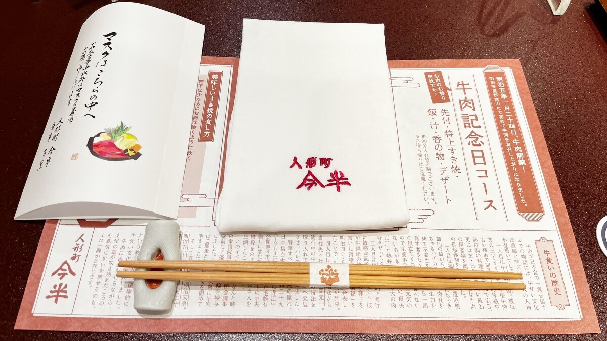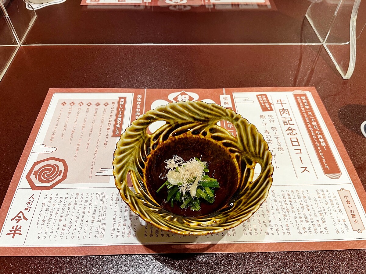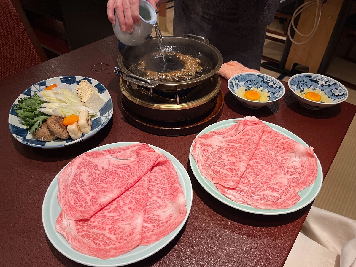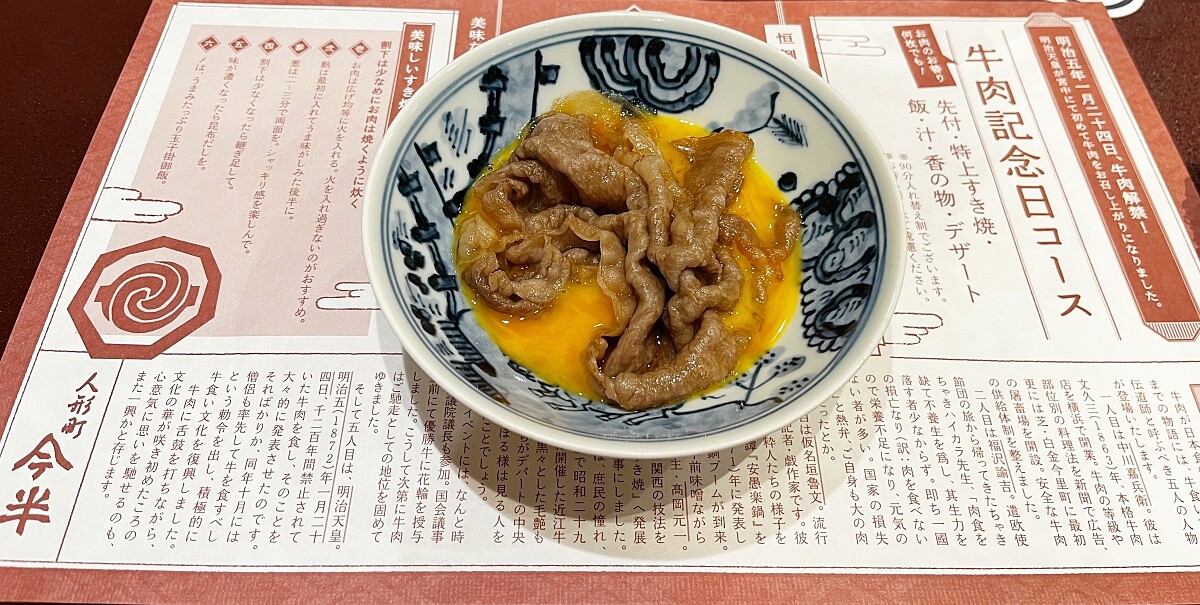 回到正題,說起關東的壽喜燒名店,大家肯定要提到這家創業自明治28年(1895年)的百年老舖「人形町今半」,平常一份壽喜燒套餐就要價8250日幣了,但每年只有1月24日牛肉紀念日這一天推出14300日幣吃到飽方案!儘管價格不斐但依舊是打爆電話也要預約到的究極美味。我在預約開放那一刻狂打了161通電話終於聽見話筒另一端傳來的人聲, 順利預約到吃到飽。
