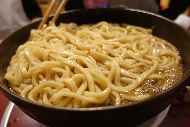 最後一定要在鍋裡煮烏龍麵,讓麵條充分吸收醬汁及菜肉汁的精華,Q彈有嚼勁超有飽足感。