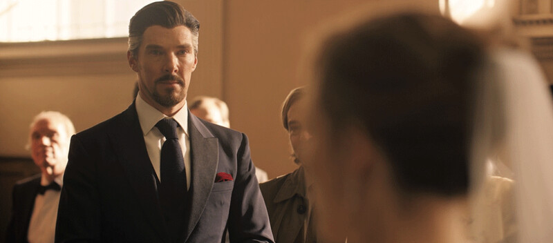 電影開始不久,我們便看到奇異博士參加摯愛克莉絲汀的婚禮場景。雖然他外表自在從容,但對於熟悉這個角色的觀眾來說,卻都可以清楚感受到他內心的五味雜陳,既希望克莉絲汀能永遠幸福,卻也對於自己就此失去摯愛而感到茫然與懊悔。