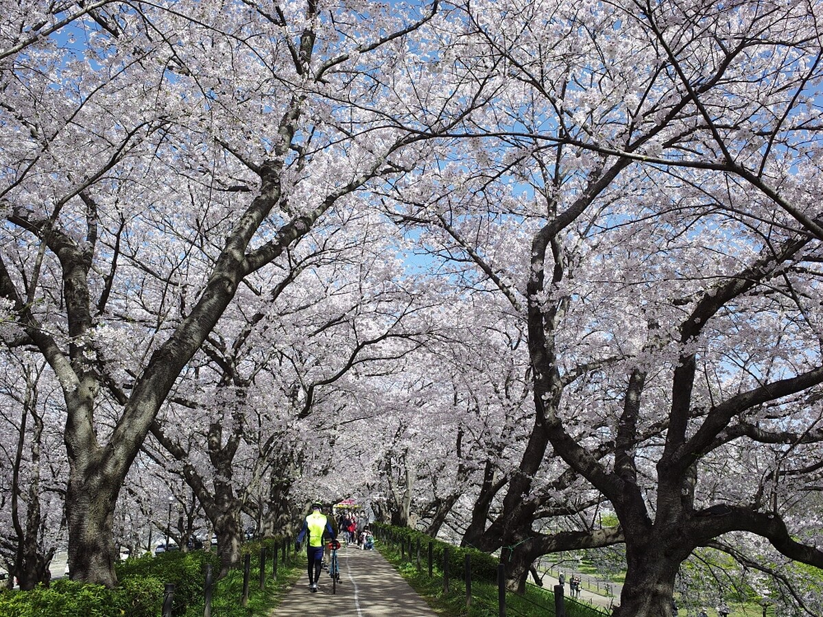 位於埼玉縣幸手市的縣營權現堂公園是廣為人知的櫻花名勝,公園內,中川沿岸的河堤上種滿滿了約1000棵的染井吉野櫻,並綿延1公里之長。據說明治天皇在1876年巡視東北時曾到此停留,因此也被稱為「行幸堤」。在櫻花盛開的春天,這裡形成了粉紅櫻花隧道,置身其中讓人感受被櫻花包圍的幸福感。