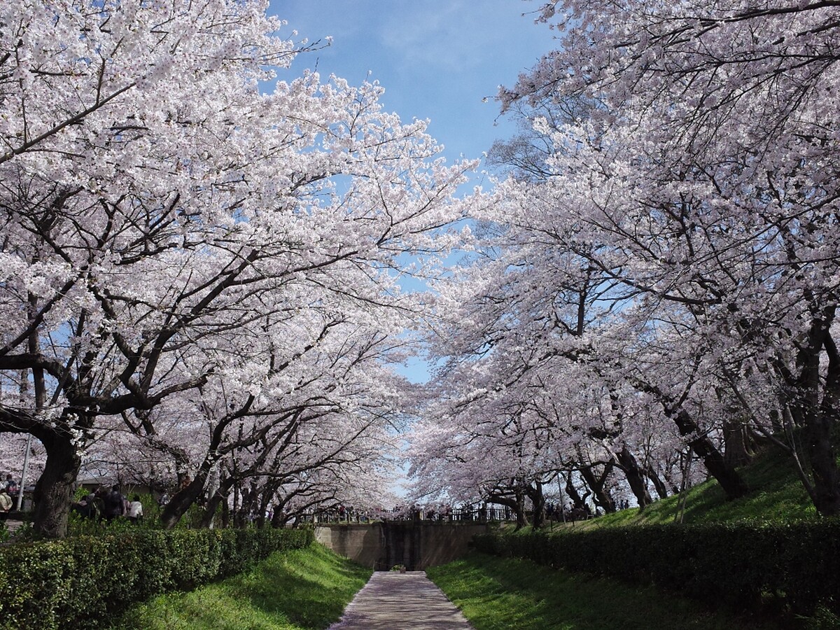 埼玉縣另一個知名的賞櫻景點便是熊谷櫻堤,是「日本櫻花名所百選」之一。於400年前為了防止荒川氾濫而建造的熊谷櫻堤,雖然從江戶時期就是櫻花名勝,但之後卻幾經凋零的歷史危機。櫻花樹在明治時期逐漸枯萎,所幸在1883年的重建運動之下,從東京買來450棵櫻花樹,重現熊谷櫻堤美景。而這年剛好是上野到熊谷路段電車開通之年,當時電車營運公司的日本鐵路株式會社還免費協助將這些櫻花樹運到熊谷呢!