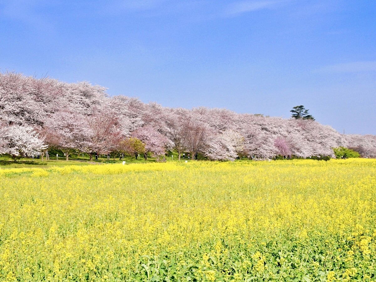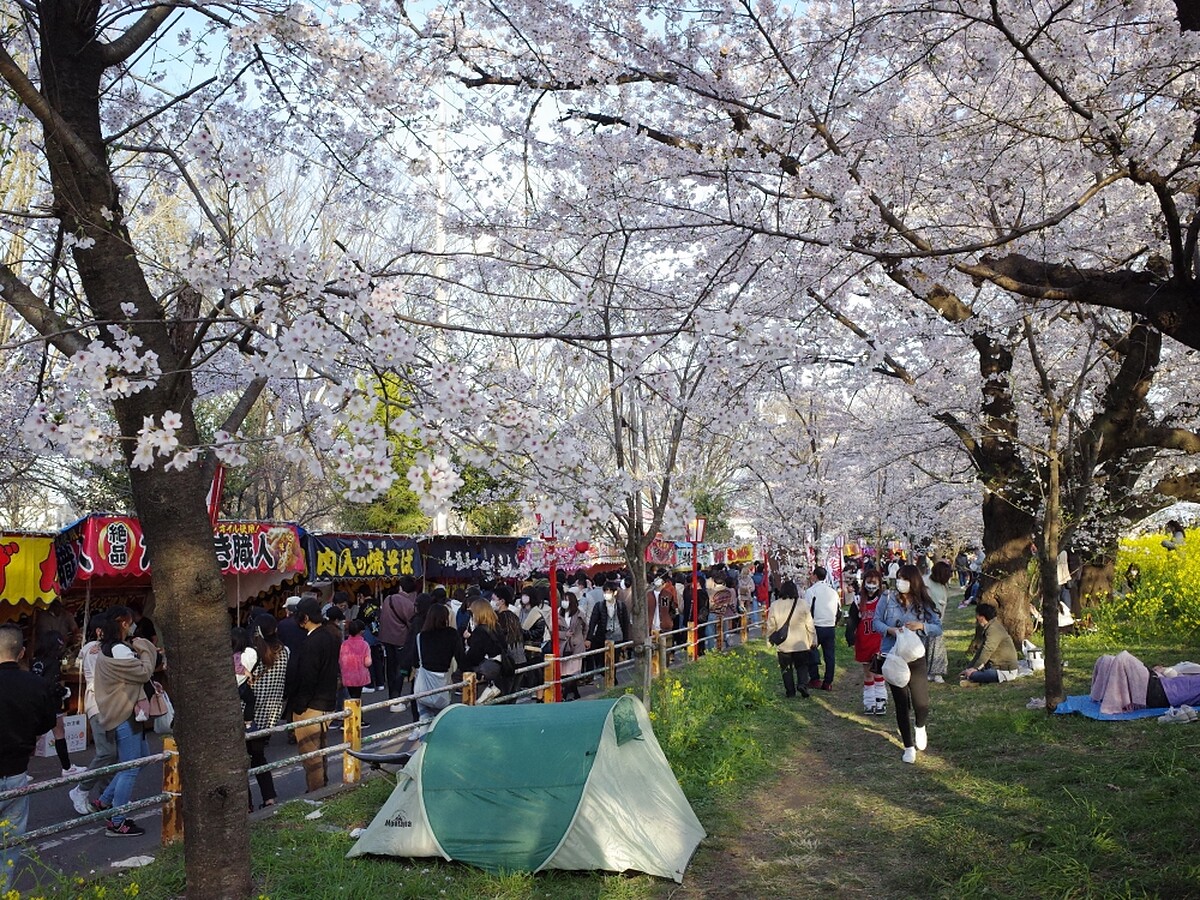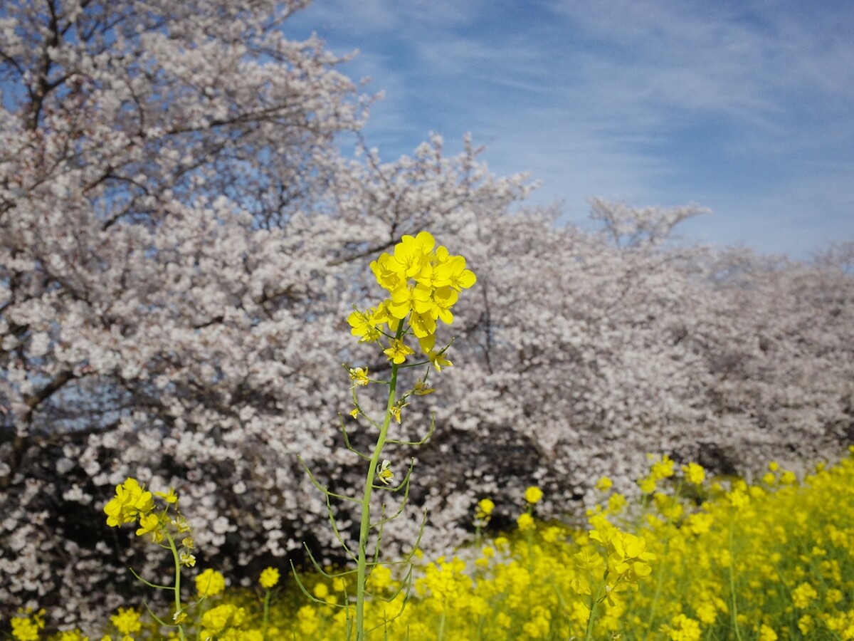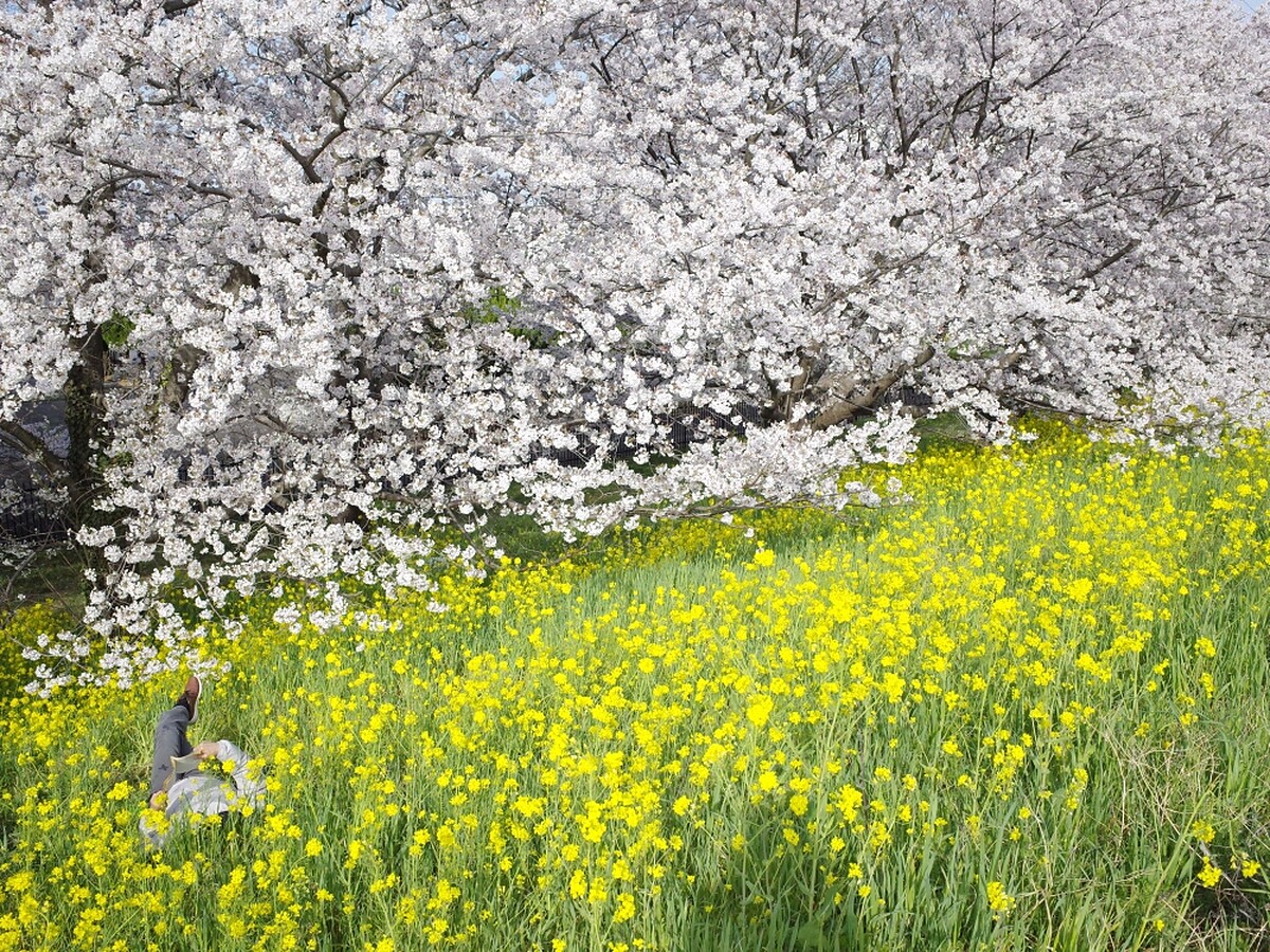 500棵染井吉野櫻的櫻花樹沿著荒川河堤約2公里綻放,加上旁邊的油菜花海相互輝映,交織出春日美景。不少人走進油菜花海中拍照、野餐、看書甚至只是來睡個午覺,享受在大自然中的愜意。