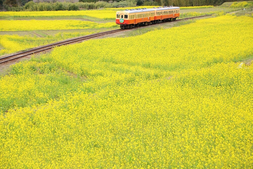 小湊鐵道和夷隅鐵道是位於千葉縣房總半島上,穿梭在田園之間的地方鐵路。每當春天到來,鐵路沿線被埋沒於油菜花田之中,再加上櫻花盛開季節,透過車窗就能欣賞絕景。但更不能錯過中途下車走進花田近距離欣賞花團錦簇、以及紀錄火車在花田奔馳的瞬間!跟著Miku的路線來趟鐵道一日遊吧~