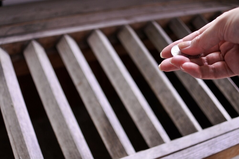 香油錢的金額以日圓5圓硬幣最佳,因為5圓的日文發音與緣分(ご縁)相同。千萬不能投的是10圓硬幣,因為發音與遠處的緣分(とお縁)相同不吉利喔!身上只有10圓硬幣的話可以投11圓代表良緣(いい縁)或是兩個10圓代表雙重緣分(二重に縁)。