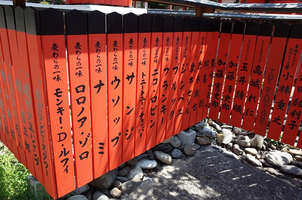 據說藝能神社能保佑演藝人員的星運,吸引許多明星到此一拜,並且奉納寫上自己名字的許願木牌,境內可以說是眾星雲集,連那~個立志成為海賊王的草帽一族也來過耶?!對迷妹迷弟來說這裡就是追星聖地,有機會一定要來找找自家偶像奉納的木牌啊!