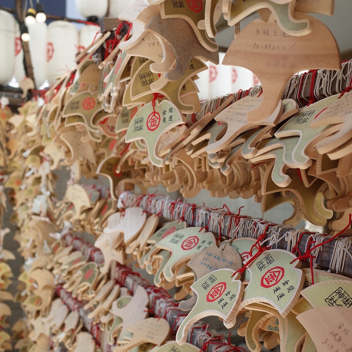 神社最有名的就是手持鏡造型的鏡繪馬,有別於一般神社的繪馬用筆寫心願,這裡的鏡繪馬是用自己的化妝品替素顏的繪馬上妝,畫出自己心目中最美的模樣,然後擺放在主殿旁的架上奉納,讓女孩們變美麗喔。