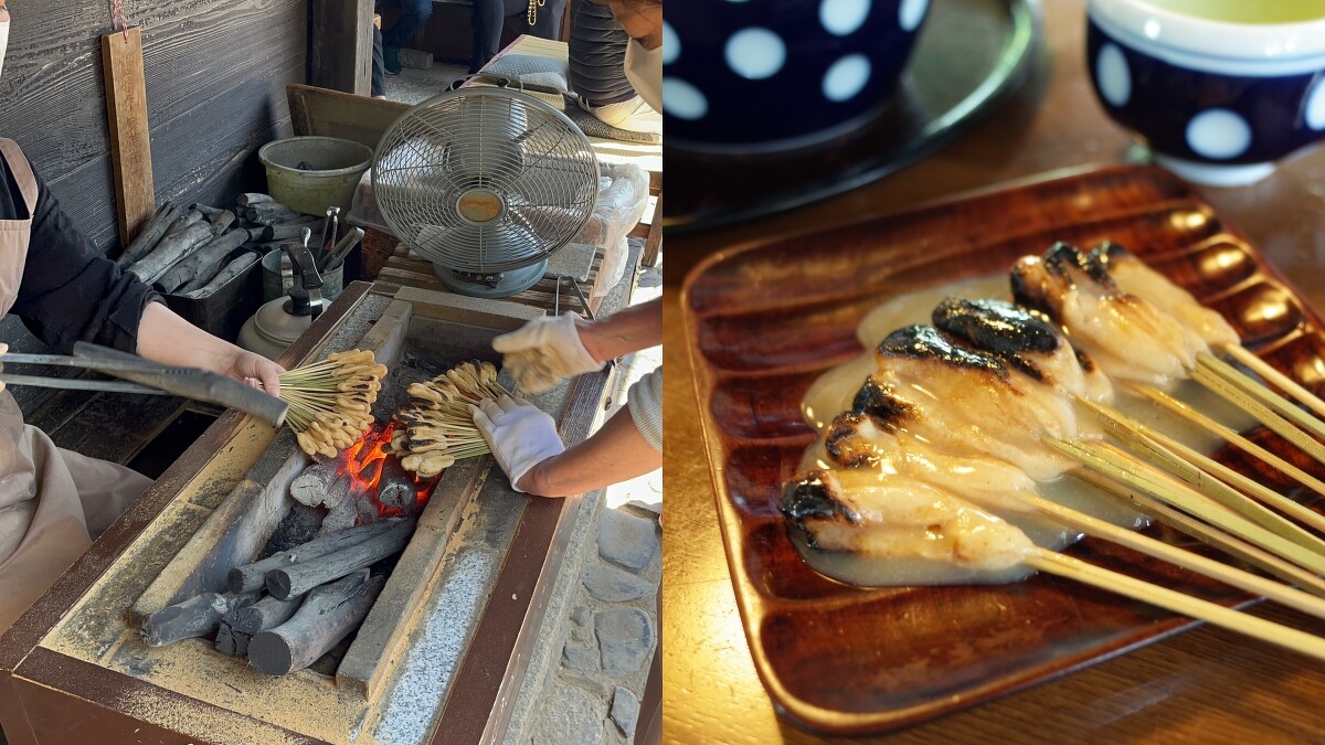 參拜後不要忘了到東門外吃同樣有千年歷史的美食—現烤麻糬(あぶり餅),一口麻糬用炭火直烤,濃郁炭香與口中散開的鹹甜味噌醬,簡單的美味。