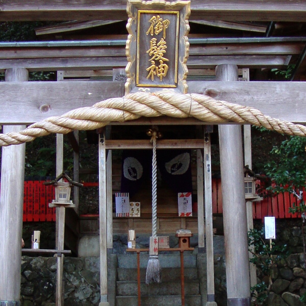「御髮神社」是日本全國唯一庇佑頭髮的神社,前來參拜的民眾除了祈求自己有烏黑亮麗的秀髮、遠離禿頭危機之外,也有許多美髮美容業者來祈願。御髮神社祭祀的是日本理髮界的始祖-藤原采女亮政之,當時政之的父親是替龜山天皇護衛寶物的武士,但卻弄丟了寶刀「九王丸」,於是父親帶著政之踏上尋刀之旅,為了維持生計,政之在旅途中擺攤為武士及村落的女性盤髮,被認為這就是日本理髮師的起源。後來政之的好手藝傳到幕府耳中,成了幕府高官御用的美髮師。