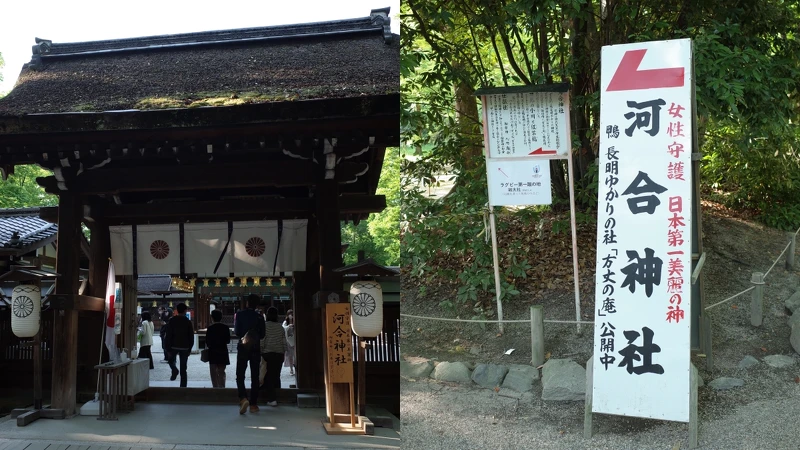 在世界遺產下鴨神社境內有個隱藏版「河合神社」,會來此神社參拜的99%都是年輕女性,大家都衝著這句招牌而來「女性守護 日本第一美麗神」。原來神社祭祀的是初代天皇-神武天皇的母親「玉依姫命」,傳說玉依姫命是像玉一般漂亮的女神,因此被稱為日本第一美麗神,守護著女性的美貌、安產、結緣等。