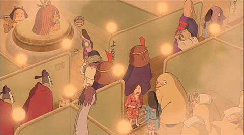 宮崎駿之所以讓湯屋作為主要場景,其原因正如上面提及河神的部分,主要是因為他認為現在的神明在社會變遷之下,應該就與人類過著同樣疲累的日子,因此需要一個好好休息的地方。而他的靈感來源則是出自靜岡或岐阜的「霜月祭」這項祭典,內容是呼喚日本眾神泡湯以恢復元氣,因此這才選擇湯屋這個場所,作為《神隱少女》的主要背景。