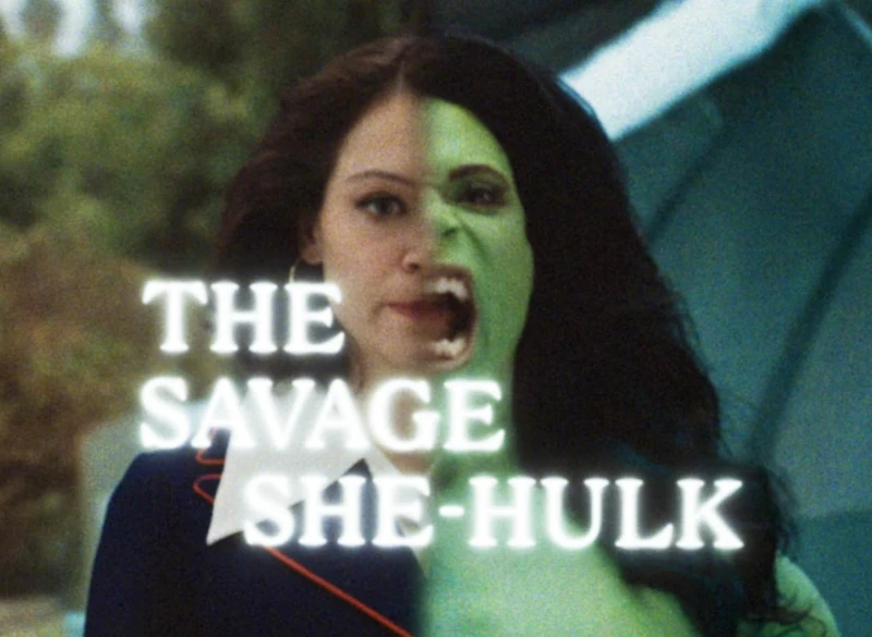 而《律師女浩克》最後一集的開頭,也刻意致敬了影集《無敵浩克》的片頭畫面,透過幾乎一樣的分鏡安排與復古風格,帶來獨特的喜劇效果。至於最後畫面上的片名《野蠻女浩克》(The Savage She-Hulk),則正是當年的漫畫名稱。