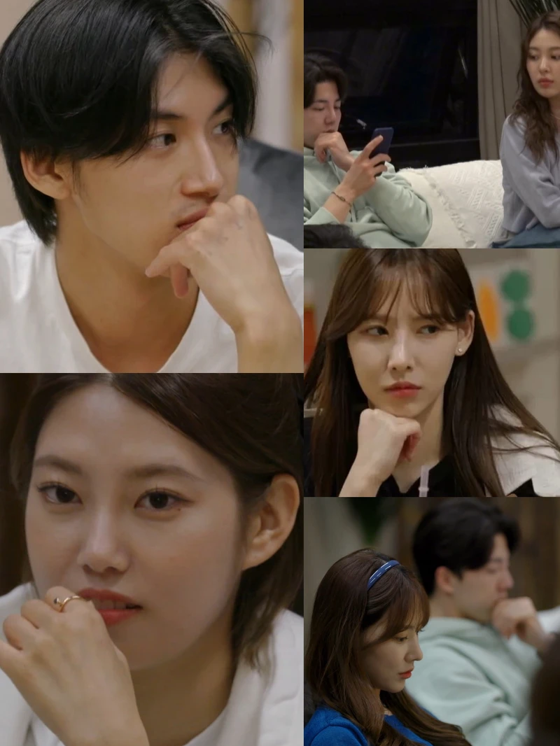 不過畢竟海恩與圭民7年的感情還是難以與7天的曖昧做對比。最新集數中,眾成員在真心話遊戲單元中不斷向海恩拋出問題,最多就是目前是否仍對圭民存有復合想法,就連賢圭也拋出直白的疑惑。雖然海恩選擇不正面回應,但在不斷向圭民拋出問題時,仍表露她的掛念,她也坦言自己目前就像站在十字路口,鬱積心頭的苦悶是對舊情難忘外,新歡賢圭令她感受了真實的幸福後,也使她動搖。