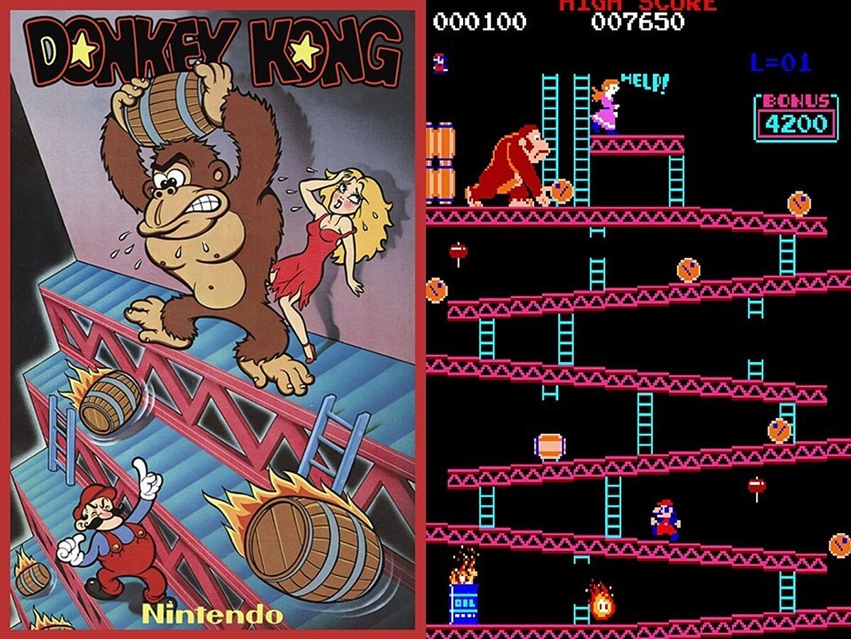 在電視廣告播畢後,場景便轉到一間比薩店來。在店中,有一個角色正在旁邊玩著最早的街機版《大金剛》(Donkey Kong),而這款遊戲正是當時瑪利歐還沒有被正式取名,只被稱為「跳躍人」(Jump Man)的首次登場之作。