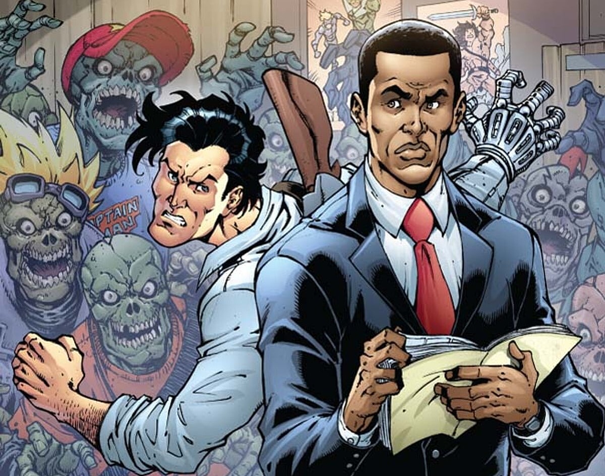 曾與艾許在漫畫裡跨界合作與交手的角色還不只如此。像是吸血鬼德古拉(Dracula)、魔俠震天雷(Darkman),甚至是美國前總統歐巴馬(Barack Obama)等人,均是其中的知名範例。
