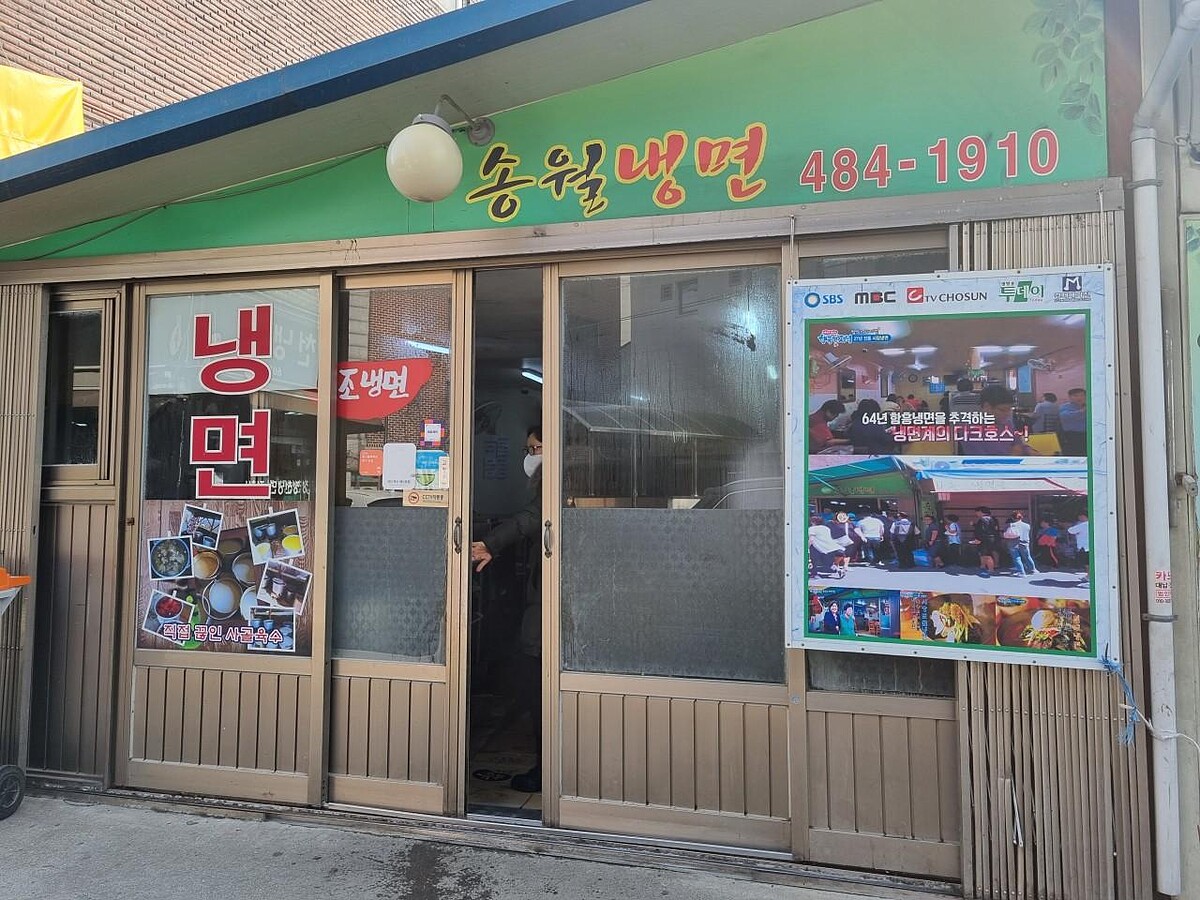 在首爾千戶洞內有一條「冷麵一條街」,小小的巷弄裡有許多專門販賣冷麵的餐廳,其中最有名的大概就是松月冷麵(音譯,송월냉면)了,SBS、MBC、TV CHOSUN等電視台的美食節目都曾介紹過這裡。