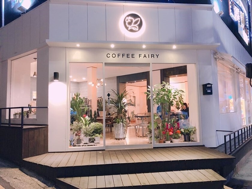 Coffee Fairy和NF Coffee一樣位在釜山地鐵德川站附近,從德川站9號出口徒步約9分鐘可以抵達。Coffee Fairy位在轉角處,由於門口充滿了盆栽的擺飾,乍看一下很容易誤會Coffee Fairy是間花店,進入咖啡廳會發現Coffee Fairy別有洞天,諾大的店內空間各處充滿主人佈置的巧思,換個角度看就會有不同氣氛的店內空間非常特別。