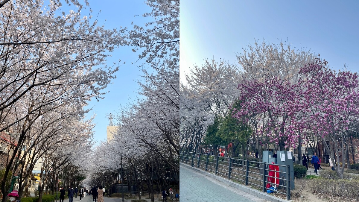 新村延世路指的是由首爾地鐵2號線出來後沿著延世路一路到延世大學正門的一段路,其實不是什麼隱藏版景點,常去首爾的朋友應該都知道新村也會舉辦自己的櫻花節,私心想介紹的原因純粹是因為如今新村的櫻花美到讓我很感動而已。