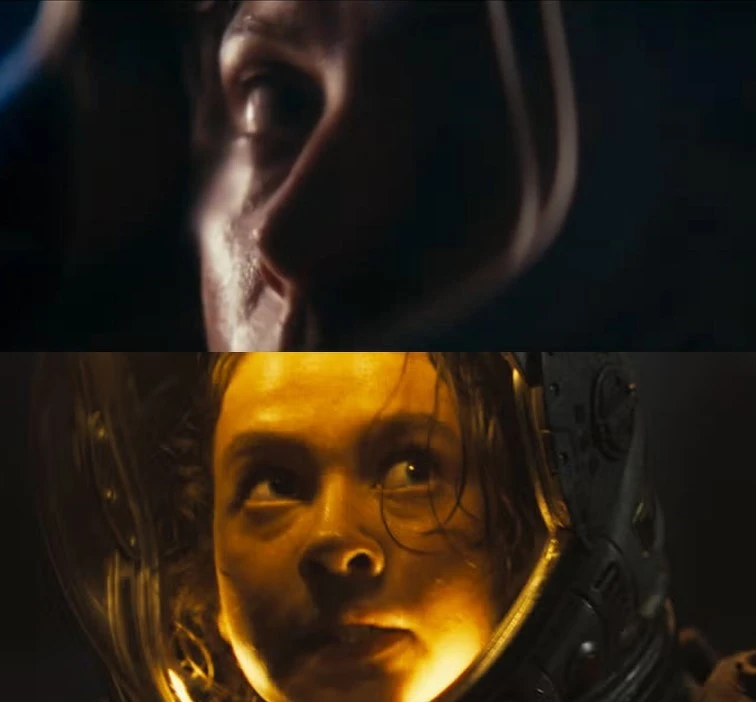 在與混血異形的最後一戰裡,小雨與《異形》第一集的雷普莉一樣,小心翼翼地穿上了太空裝,準備與異形展開最後決戰。其中有個鏡頭,是雷普莉自視野受限的太空裝裡轉過頭去,試圖確定異形的位置,卻不知異形其實早已悄悄出現在她身後。而在《異形:羅穆路斯》裡,也有類似的情節安排,並直接重現了《異形》的畫面構圖。