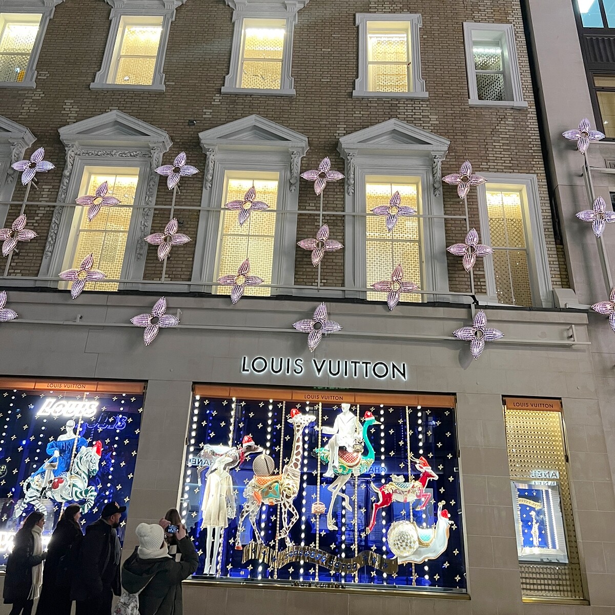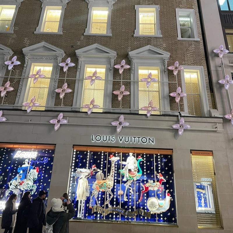 LV Monogram經典的四葉草燈飾綴滿了店面外牆,還會閃閃發光,十分吸睛。