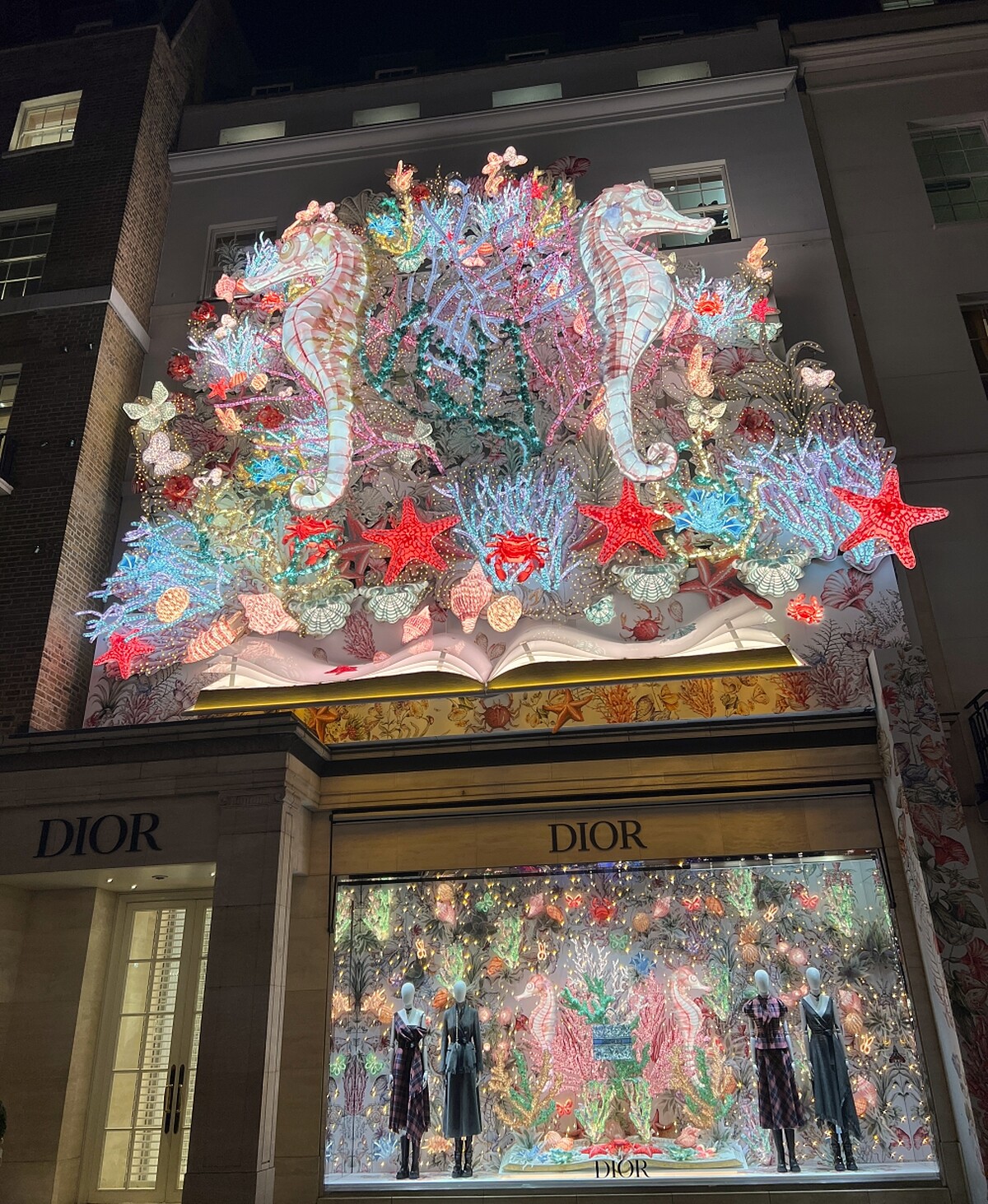 香奈兒則大氣以三層樓高的聖誕燈飾取勝,交錯點綴在其上的星星圖案非常華美。