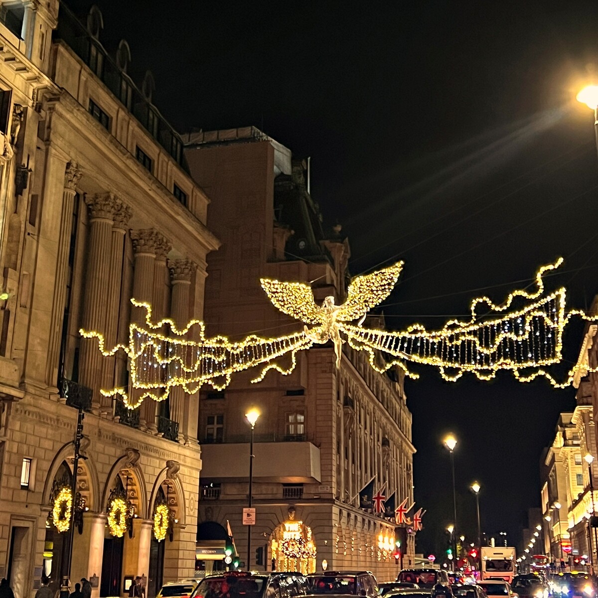 就連走回飯店的路上,也在路中看到這個邱比特天使燈,只能說在倫敦的聖誕氣氛真的好濃厚,非常浪漫!