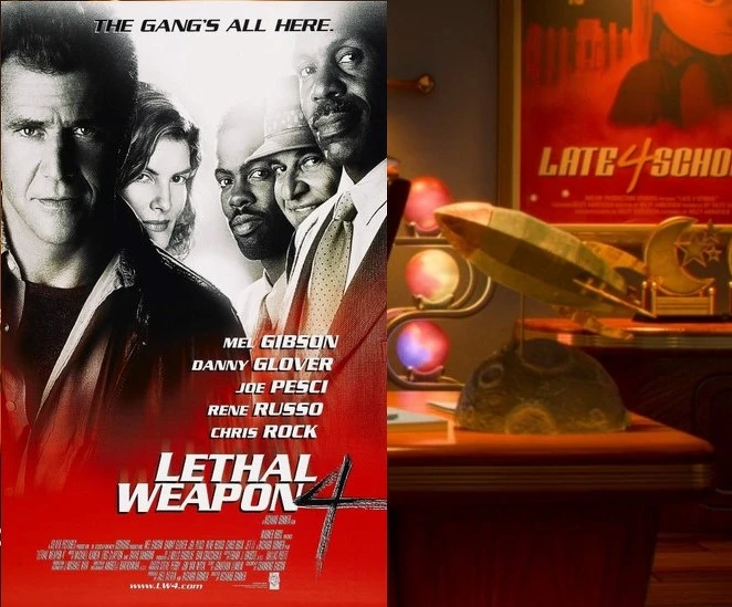 在《夢境製片廠》裡,有不同導演會負責不同類型的夢境,而那些夢境的海報,則有許多均改編自真實存在的電影海報。像是專門負責動作類夢境的導演,其辦公室牆上便掛著一張名為《Late 4 School》的海報,其原型則是李察.唐納(Richard Donner)執導,梅爾.吉勃遜(Mel Gibson)、丹尼.葛洛佛(Danny Glover)與李連杰主演的《致命武器4》(Lethal Weapon 4)。