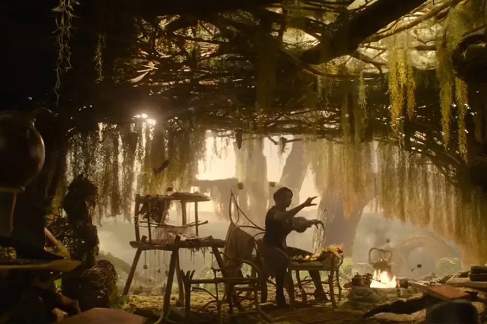在《魔法壞女巫》中,喬納森.拜利飾演的王子費耶羅初次遇到艾法芭時,曾開玩笑地說,自己差點就沒發現「與樹葉融為一體」的艾法芭。而在這一集裡,艾法芭便是藏身於樹葉當中,藉此躲避費耶羅與他的部下。