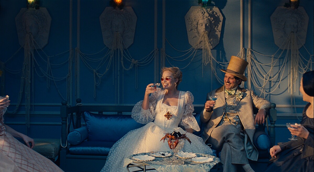 而到了故事後半段,瑪格.羅比飾演的角色嫁給另一名富有人家後,無論服裝或場景設計,則轉變為別具設計感的華麗風格。但在此同時,這種視覺上的精美,卻也與主角的孤寂心境成為對比,既讓我們看到她雖然總算過上了無需擔憂生計的富裕生活,內心卻也顯得空洞不已,與前半段正好成為鮮明對比。