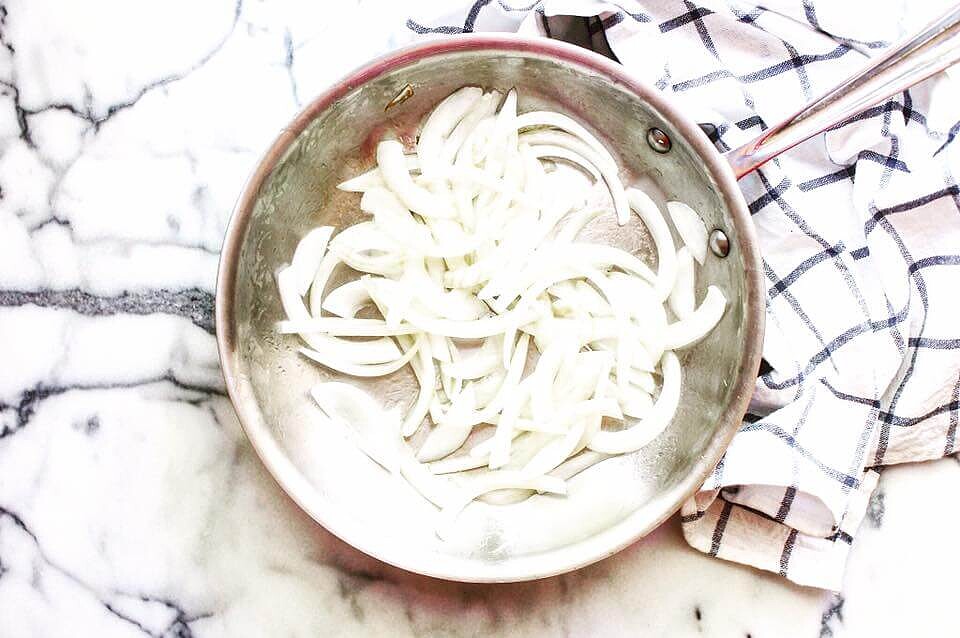2.平底鍋以大火預熱,倒入橄欖油。將洋蔥炒至透明後,起鍋備用。