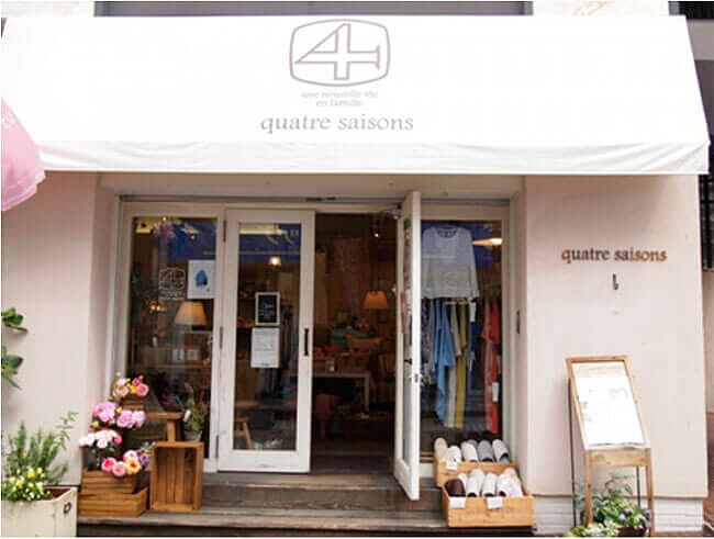 「quatre saisons」日法混血的生活雜貨店,有30%左右的商品由日本開發,像日本製的嬰兒服,其他也有法國的小雜貨,商品多元、設計簡單,會讓人想進去逛一逛,是家適合挑選禮物的商店。
