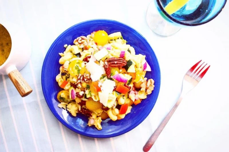 熱呼呼的夏天,不想再受煎煮炒炸的高溫試煉,那該吃什麼好呢?熱到發昏時,這道好做又清爽的沙拉就是我們的救星。簡單的橄欖油和黃檸汁融合的沙拉醬底,讓每個食材不失原味,卻又非常提味。而且雖說是沙拉,不過看這有通心粉又有多樣蔬菜的澎湃,作為一份輕主食也是綽綽有餘的呀。