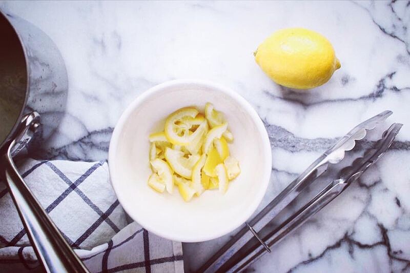 1. 取一小鍋放入少許水,加點鹽。將水煮滾後放入檸檬片,煮約2分鐘後撈起備用。
