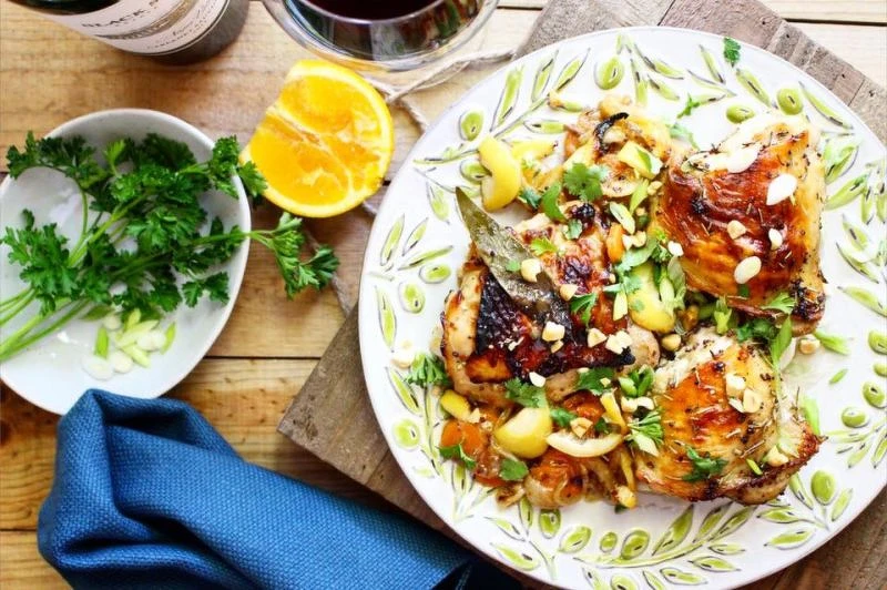 有關烤雞的料理食譜上千百種,讓你看了眼花撩亂,沒有頭緒該從哪裡開始嗎?何不試試這道蔬菜烤雞呢,水果蜂蜜組成的醃醬使雞肉軟嫩不柴,沈浸在流溢雞汁中的蔬菜更顯鮮甜。一只烤盤就滿載著無窮風味,是道非常適合初學者的「功夫菜」。