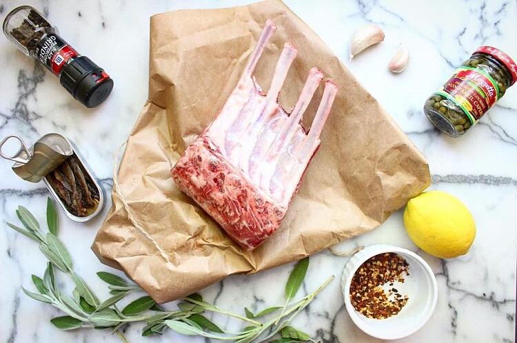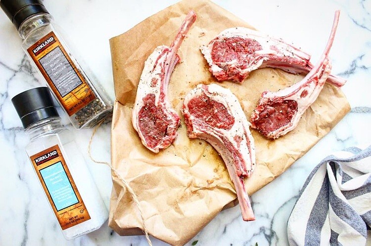 1. 將羊排表面用廚房紙巾稍微擦乾後,撒上適量鹽和黑胡椒調味。靜置室溫下約15分鐘,讓羊排入味。