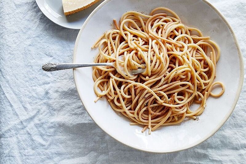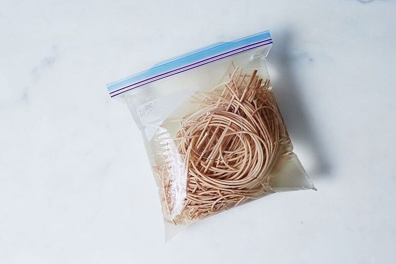 美食網站 Food52 建議以 350℉/176℃ 的溫度烘烤義大利麵 15 分鐘左右。待呈金黃微褐色的義大利麵冷卻後放置於裝了水的袋中,密封後冷藏。目的在於重新賦予麵條水份,保持新穎口感之餘還能達到如新鮮義大利麵般的口感。