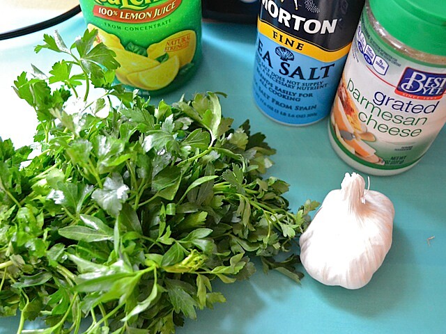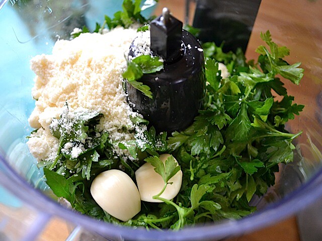 醬料主要以新鮮的巴西里、奶油、橄欖油及現磨帕瑪森乾酪為主。建議比例為 4 到 6 瓣切碎大蒜搭配兩大匙的無鹽奶油、½ 杯細切巴西里及現磨帕瑪森乾酪。當然也可依個人喜好調整食材用量。