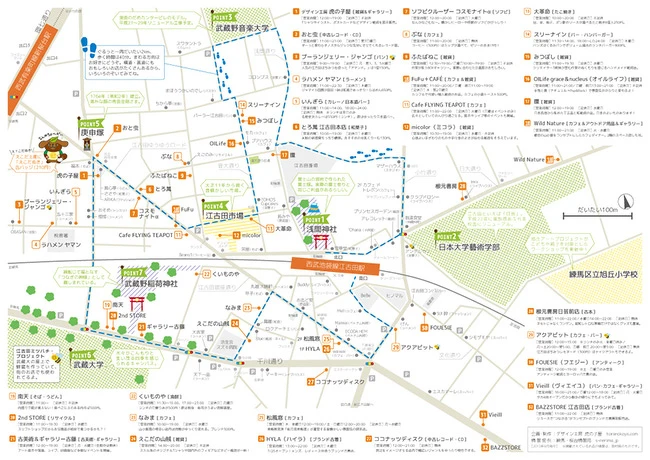 小巧可愛的店中販售CD、獨創的設計小物、雜貨等等。在這裡可以拿到精美可愛的江古田散步地圖,不但有各店家的詳細介紹,還有優惠券可以使用呢!店長除了設計江古田散步地圖外,還建了江古田當地情報網站えこだ島,滿溢著地元愛,行前可以參考看看。