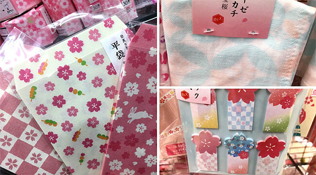 左圖為櫻花染色設計的餐巾紙,可愛的設計,多麼適合外出野餐時使用。右圖為3款櫻花圖案的信封袋,精緻細膩的花紋圖案,真的是看不出來才100日圓。建議喜歡買小東西又不小花大錢的人要趕快趁著櫻花季快去大創採購一番,相信一定有種挖到寶般的雀躍心情。