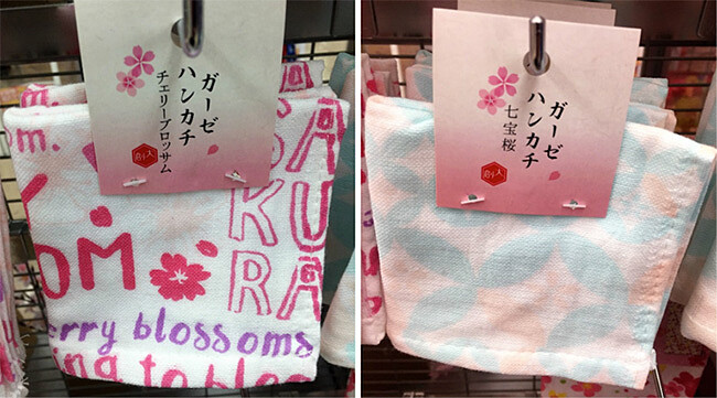 來日本大家最愛買的禮物之一就是「手帕」了,而大創也推出2款櫻花造型的手帕,左圖是融合英文字母的活潑俏麗款手帕。右圖則是帶有淡藍花紋且秀氣典雅款的手帕,這款很適合送給長輩們,應該會相當討喜。