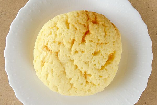 這款菠蘿麵包不具備慣例的格狀紋路,而且在香氣上,比起甜味,起司味略顯凸出。那麼其菠蘿麵包之名的由來,一定是強調在表面的餅乾皮上吧?於是,我便張口準備嚐嚐看麵包皮的口感。……嗯~張大口咬下後,意外地口中瀰漫著鹹味!咦?不應該是類似哈密瓜風味的香甜口感嗎?我疑惑地回過頭來看向包裝上的商品說明後,發現上面寫著這樣的標語:「鋪上揉進帕瑪森起司的餅乾皮。」我還以為不全然是由起司的風味勝出,仍會隱約品嚐到菠蘿麵包的口感,不過實際品嚐過後,發現起司的存在意外地強烈。
