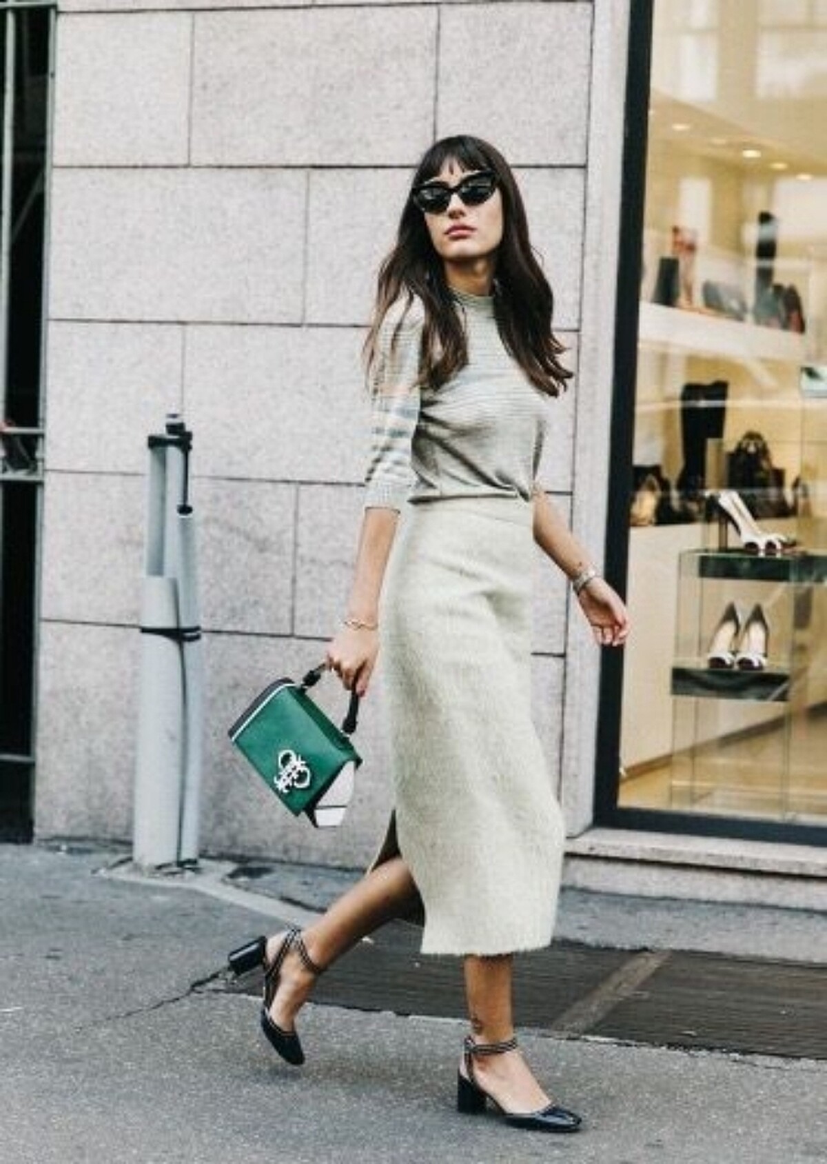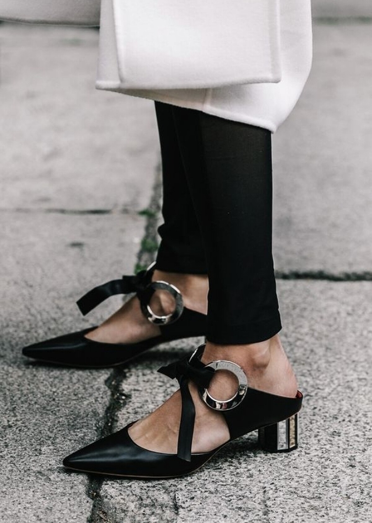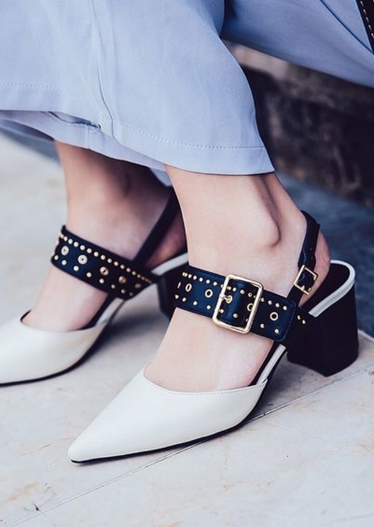 全包款可為正式工作場合,衣服適合選擇硬挺肩線鮮明的搭配,變化在於楦頭與側身設計,透過珍珠、織帶、金屬扣環、雕花交織出有別素色款式的無趣,更能藉此提升整體亮點,工作拘限襯衫穿搭,可以將焦點放在鞋子,既不會過於誇張的表現,卻又能停留視覺,低調的奢華莫過於此了。