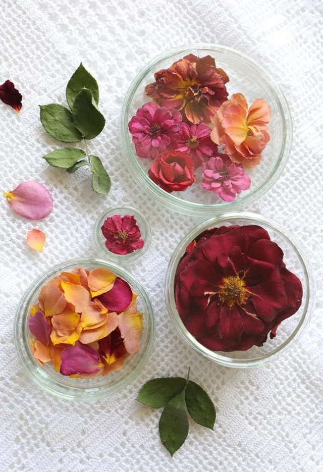 使用乾燥劑幫助乾燥,能使花朵留下鮮豔的色彩!將花從花托下方約 1 到 2 公分處剪下,將保鮮盒等密封容器內鋪上厚厚的乾燥花用矽膠乾燥劑,將花置於上方,並用湯匙等工具將乾燥劑輕輕撒在花上,讓花完全被埋住,之後將容器密封,約需乾燥一週。