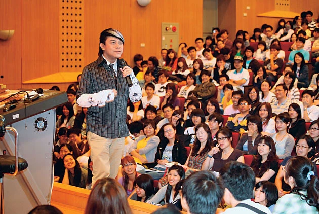 蔡康永的人氣,從他為新書《蔡康永的說話之道》宣傳所辦的校園演說可見一斑。幾個小時前就有人排隊,為了讓人潮進場,演講足足延遲了半小時以上,連講台上也席地而坐、擠滿了「搖滾區」的聽眾。