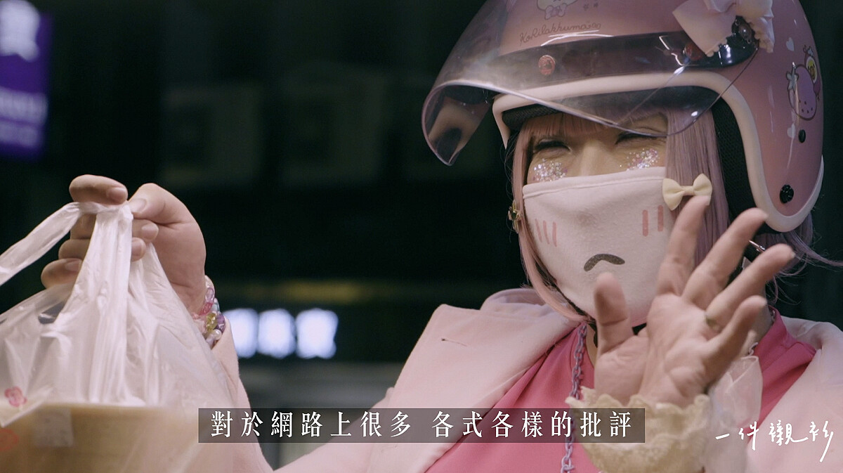 她形容自己的存在就是社會實驗,每天出去外送都會遇到不同的人,那些鄙夷嘲笑的眼光,她早已習以為常,甚至會站在批評她的人的立場思考,別人嫌棄她送的餐不敢吃,但她依然保持樂觀,回敬一抹最可愛天真的微笑。