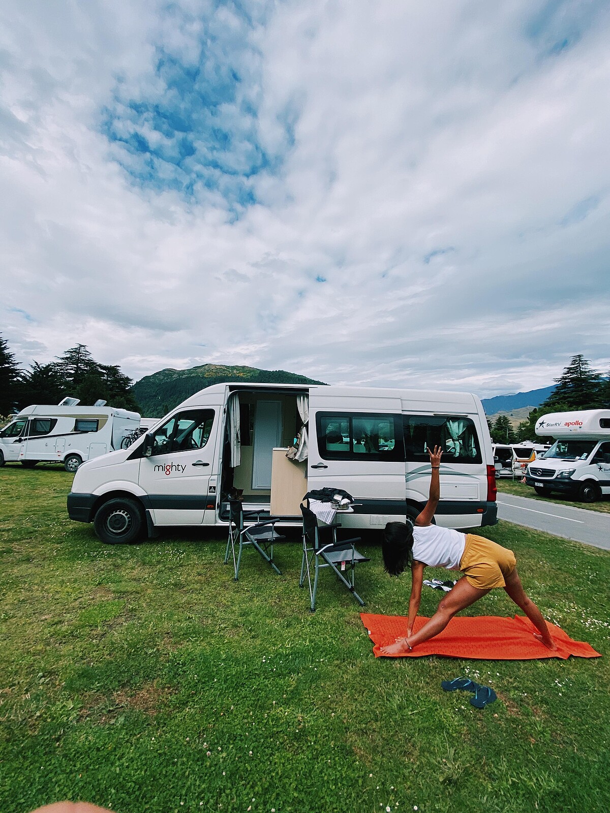 從2019 跨到2020 我們就租台露營車在紐西蘭南島展開我們的旅程,被大自然包圍著,隨時都可以帶著瑜珈鋪巾到戶外曬太陽做瑜珈伸展筋骨,還能去體驗當地的box,過著簡單卻好快樂的生活,身心真的都徹底被治癒了。
