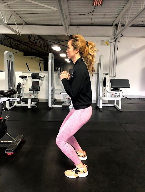 一次三組一組十下,最基本的練屁股大腿的深蹲,這個基礎功練好許多器材都需要搭配深蹲的動作來做,空蹲暖身完後可以看家裡有什麼重的物品拿在手上增加負重量。初學者要注意膝蓋不要超過腳尖,屁股要往後坐,先確認好正確動作再來練不然一切都是空。