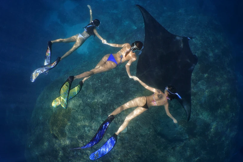 深深記得每次的潛旅都因為自由潛水而親眼見證到每個國家海裡中的美。第一次出國潛水時是到了隸屬菲律賓的其中一小島-科隆島。從第一天潛點特殊的火山岩地形,淡鹹水湖的條件下潛時會發現,越下潛時水溫會隨著深度升高,最高溫會達到30度的高溫!再到保有二次大戰遺跡的沈船,no fin就可以下潛親臨的巨大沈船。和舟車勞頓花費將近5小時的交通及等待時間才終於親眼看見讓人覺得此趟潛旅最值得的海中美人魚-儒艮。每一天的潛點都成為心中最美的回憶。還有一次出國到了藍夢島,以manta point著名的藍夢島,看到魟魚風暴的機率高達90%!永遠都記得當我第一次看到manta時心中的震撼,一隻隻巨大的身形在大洋池內迴旋的游來游去。呼吸準備做好,馬上躬身下去與魟魚們共游在大海裡,心中感受到有著大體型的魟魚卻讓人感到很溫暖、很溫和,他們自在的游行、進食,途中我一直很怕驚嚇到牠們也與牠們保持適當的距離。這邊也要提醒熱愛潛水的大家,請不要觸碰海裡的任何生物,也不要擦任何非海洋友善的產品下水,不僅對他們的生活環境造成污染,也會對海裡生物本身造成傷害。除了這兩次潛旅外,其中也有很多潛點我個人很推薦!菲律賓薄荷島的balicasag island ,擁有豐富珊瑚礁的大斷層和能見度很好的海龜共游區,雖然交通上都需要經歷陸、海、空才能到達,但收穫到的美麗回憶絕對是值得的!