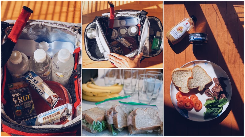介紹一下我出發前會準備的東西。一定要帶滿滿的水,你在爬山時流的汗真的是超乎你想像的多,我自己會帶個兩公升左右的水,爬山帶一公升另外一公升丟車上等回車上再喝。我是平常就不愛喝冰水吃冰品都喝常溫水的類型,但我老公剛好相反,他就是什麼都要喝冰的常溫水他喝不下去,所以他都會帶保冰袋冰超多水等回到車上後喝,然後他就中暑了哈哈哈。有一個重點就是千萬不要因爲熱然後快速灌冰水,就算真的要喝冰也要慢慢的喝,我想知道跟不知道的人應該各半,很多人可能以為因為很熱所以要喝冰水降溫,但其實喝冰水會立即的收縮毛孔停止排熱,反而把熱積在體內導致中暑。水之外會再帶輕便的食物我都自己做三明治,平常沒事都不會想吃三明治但在荒郊野外餓得半死時吃什麼都覺得特別美味,也可以帶Protein bar輕便又可瞬間補充能量,如果真的沒空或來不及準備就可以去便利商店買花生土司或三明治都超方便,上山就是要輕便。上面的照片有我平常做三明治時會使用的食材跟會帶上山的東西。裝三明治的袋子為了輕便我會使用拉鍊袋,也都會重複使用。