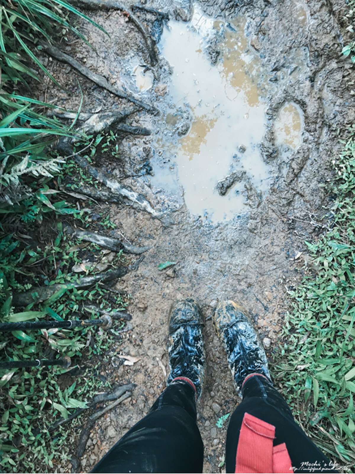 前面有提到松蘿湖就算沒下雨,也都是泥巴地,很多地方還積水,真的要聽網路大家的建議,穿雨鞋上山~~~~如果怕雨鞋穿不合腳或是之後穿不到,想穿習慣的登山鞋,也要套防水鞋套,不然登山鞋真的會整雙髒掉!!!!而且不僅鞋子,連襪子跟褲子都會髒掉(大概小腿肚以下都會髒)PS:防水鞋套要買中高筒的才有效喔!